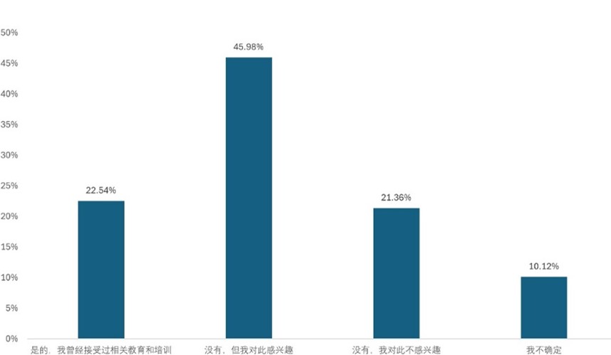 在大別山精神的教育和培訓(xùn)方面,僅22.54%的受訪者表示接受過相關(guān)教育,而45.98%的人雖未接受過,卻對此感興趣。這說明公眾對大別山精神的教育和培訓(xùn)需求較大且較為迫切,相關(guān)部門可考慮多組織些教育活動和培訓(xùn)項(xiàng)目來滿足需求。