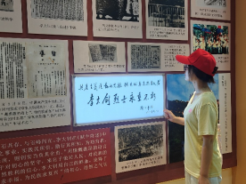 展陳館內(nèi),珍貴文獻、歷史照片與場景復(fù)原再現(xiàn)了李大釗的一生。在《我的馬克思主義觀》手稿前,成員們屏息凝視泛黃的紙頁,墨跡如刀刻般清晰?粗腴T色彩絢麗的壁畫,似乎能聽見大釗先生“試看將來的環(huán)球,必是赤旗的世界”這振奮人心的吶喊。參觀過程中,實踐團采訪到一位同學(xué),邀請她發(fā)表了對愛國主義教育的看法,她說道:“愛國主義教育對于國家非常重要,尤其是對青少年來說,是成長過程中必不可少的一部分。”隊員們紛紛記錄,將激動轉(zhuǎn)化為文字。
