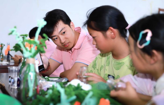 圖為實(shí)踐隊(duì)員給予小朋友創(chuàng)作靈感 韓瑞穎攝