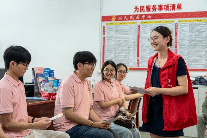 圖為相關(guān)基層人員帶領(lǐng)實(shí)踐隊(duì)員了解網(wǎng)格員工作 韓瑞穎攝