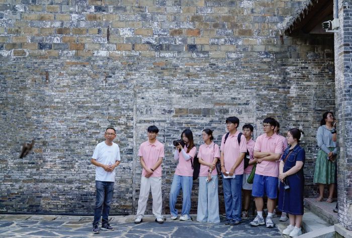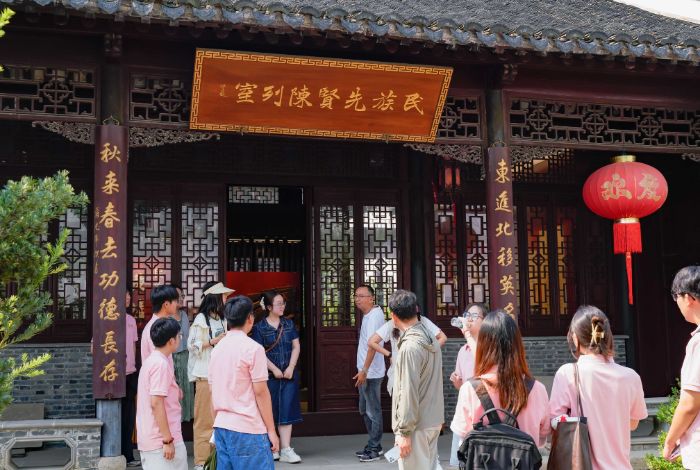 圖為實(shí)踐隊(duì)員在殷氏宗祠聽相關(guān)負(fù)責(zé)人講解 曹旭攝
