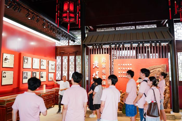 圖為實(shí)踐隊(duì)員在黃墟民族先賢陳列館里聽講解 曹旭攝