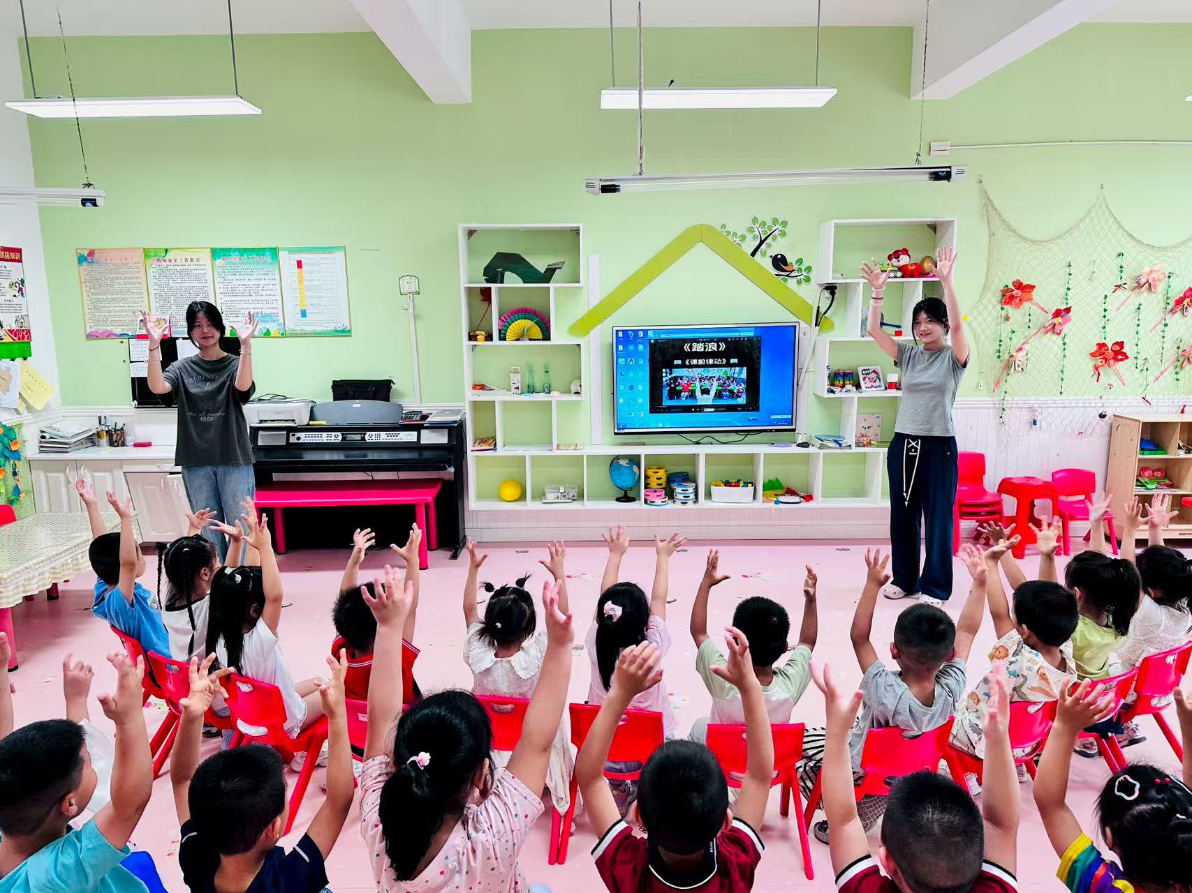 三、 音舞律動(dòng),啟迪心靈之美 伴隨著歡快活潑的音樂(lè),志愿者們?yōu)楹⒆觽儙?lái)了一堂別開(kāi)生面的音樂(lè)舞蹈課。他們耐心地分解動(dòng)作,一遍遍地示范,教小朋友們學(xué)習(xí)簡(jiǎn)單易學(xué)又充滿(mǎn)趣味的手勢(shì)舞。孩子們興致勃勃地跟著哥哥姐姐們揮舞著小手,扭動(dòng)著身體,臉上綻放出燦爛的笑容。教室里充滿(mǎn)了歡聲笑語(yǔ)和律動(dòng)的節(jié)奏,音樂(lè)與舞蹈不僅鍛煉了孩子們的身體協(xié)調(diào)性,更在他們心中播下了感受美、表現(xiàn)美的種子。