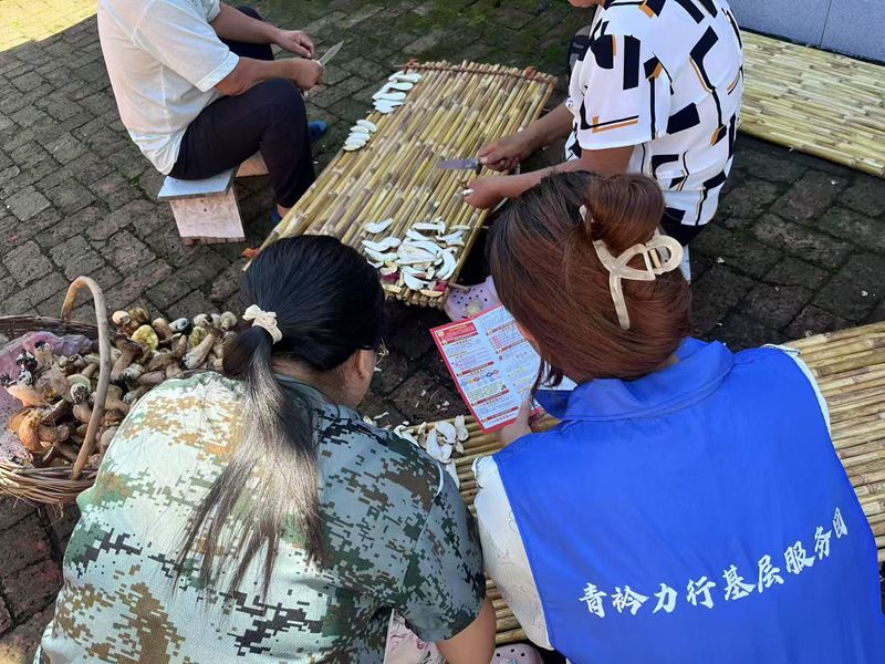 圖為團(tuán)隊(duì)成員分發(fā)問題收集表。楊慧螢供圖