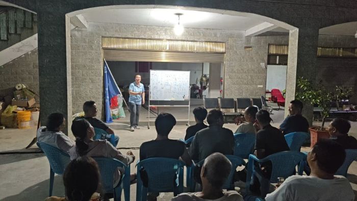 傍晚,借助張叔叔的人脈資源,實踐隊邀請到20左右余位村民參與普通話夜校課堂。張老師精心挑選“水井”“海子街”“咯吱窩”等與生活、地名、身體部位相關的詞語,通過“實物展示+情景模擬”教學,村民們都很積極,盡管發(fā)音略帶鄉(xiāng)音,卻贏得了全場掌聲。