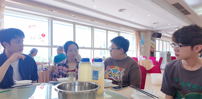圖為實踐團成員在海富酒樓品嘗的美食并與老板進行訪談