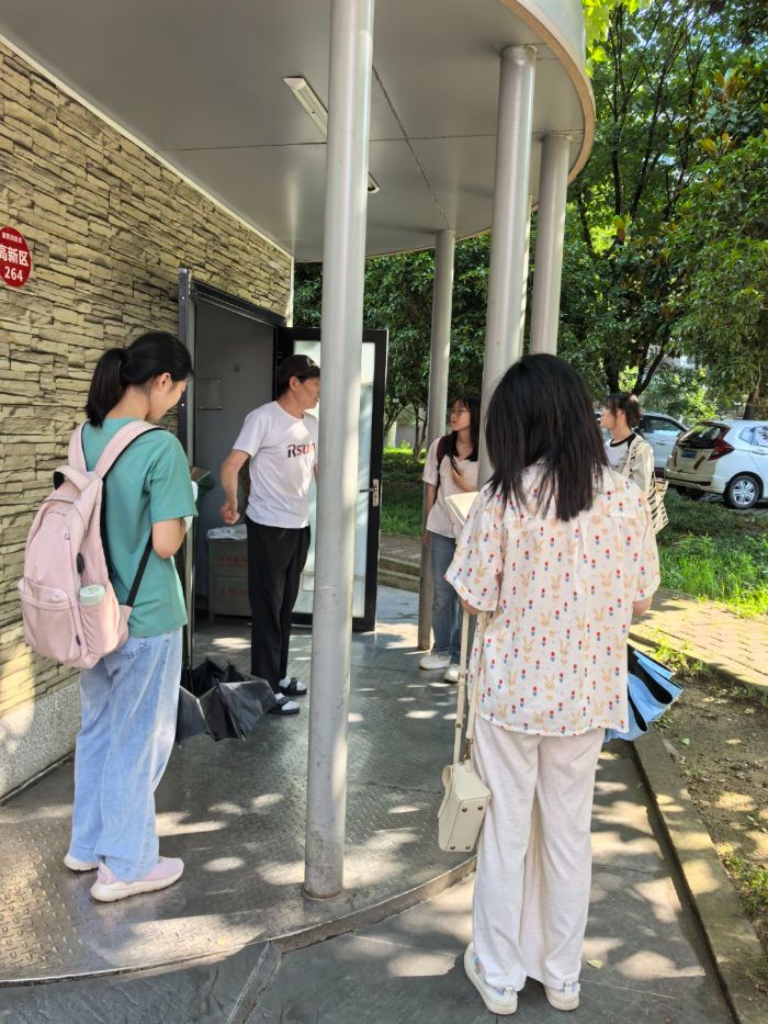 6月30日,團(tuán)隊(duì)深入新麓社區(qū),開(kāi)展實(shí)地走訪調(diào)研。新麓社區(qū)是合肥市垃圾分類示范社區(qū),自2020年起推行垃圾分類工作,現(xiàn)已建成10余個(gè)定時(shí)定點(diǎn)投放站。隊(duì)員們分成三個(gè)小組,分別走訪了不同區(qū)域的垃圾分類投放點(diǎn),與勸導(dǎo)員、分揀員和社區(qū)居民進(jìn)行深入交流。