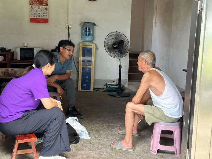 (團隊成員在村支書的帶領下拜訪當年的修渠老人王爺爺,程琪攝)