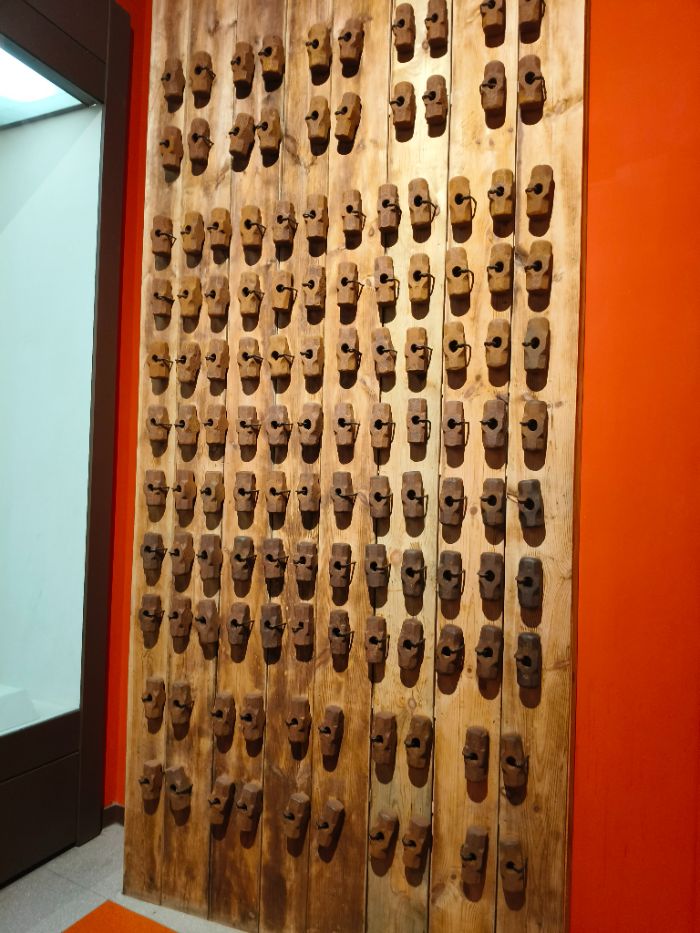 (修渠時的食堂生活制度及水壺、瓢等生活用具,賀燕攝) (修渠人民使用過的錘頭,賀燕攝)
