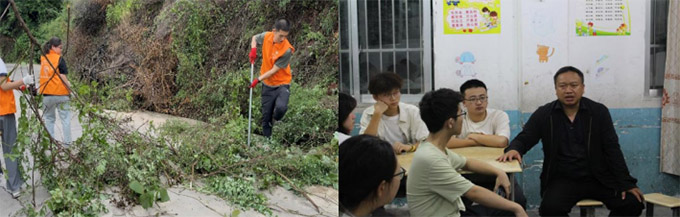 產(chǎn)業(yè)與生態(tài)共建,方有振興長效。7月13日下午,暴雨突襲,斷枝堵塞村道。實踐隊聞“汛”而動,聯(lián)合村干部冒雨清障4小時。駐村段書記肩扛碗口粗樹干,隊員黃川玲手被劃傷仍堅持作業(yè),最終眾人合力恢復(fù)1.5公里道路暢通。當(dāng)晚,實踐隊更與華中科技大學(xué)支教隊聯(lián)合召開鄉(xiāng)村振興交流會,共商農(nóng)產(chǎn)品推廣與教育幫扶協(xié)作機(jī)制。
