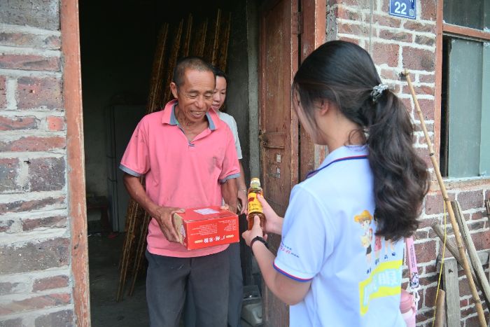 7月21日,在前期走訪脫貧監(jiān)測(cè)戶的基礎(chǔ)上,心連壯瑤實(shí)踐團(tuán)探訪了村中“五保戶”與困難家庭,送上暖心關(guān)懷和生活物資。
