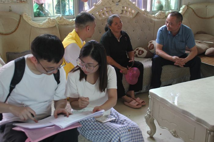 在村黨支部書記鄧秀清、指導(dǎo)老師陳世南和駐村第一書記李濤的推動(dòng)下,心連壯瑤實(shí)踐團(tuán)成員與鎮(zhèn)村干部成立了聯(lián)合走訪小組。