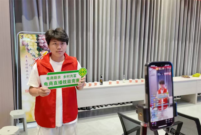 圖為青穗興葡實(shí)踐隊(duì)成員參加直播電商競(jìng)賽。劉湯亞供圖。