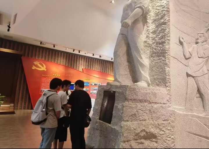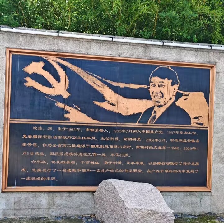 實(shí)踐次日,團(tuán)隊(duì)轉(zhuǎn)赴沈浩同志先進(jìn)事跡陳列館,深入了解沈浩同 志的崇高精神與感人事跡。步入館內(nèi),映入眼簾的是精心設(shè)計(jì)的 布局與詳實(shí)的展陳,這全方位、立體化地展現(xiàn)了沈浩同志作為小 崗村黨委第一書記的赤子情懷與卓越貢獻(xiàn)。一幅幅圖片、一段段 影像、一件件實(shí)物,無一不深情講述著他“兩任村官瀝血嘔心帶 領(lǐng)一方求發(fā)展,六載離家鞠躬盡瘁引導(dǎo)萬民奔小康”的動(dòng)人篇章。 隨后,實(shí)踐團(tuán)成員實(shí)地探訪了沈浩同志在小崗村的舊居與辦公 室。所謂辦公室,無非是一個(gè)低矮的房子,里面只是極其簡單的 辦公桌椅,這與他在村民心中的形象形成鮮明對(duì)比。“沈浩精神” 所蘊(yùn)含的忠誠、擔(dān)當(dāng)與奉獻(xiàn),此時(shí)也化為青年學(xué)子們砥礪前行的強(qiáng)大動(dòng)力。