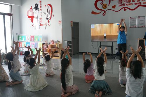 科普環(huán)節(jié)結(jié)束后,志愿者開啟古典舞蹈《茉莉花》教學(xué)。從基礎(chǔ)的站姿、手位,到《茉莉花》的經(jīng)典舞步,志愿者逐一示范、分解動作。孩子們跟隨節(jié)奏,認(rèn)真模仿學(xué)習(xí),盡管動作稍顯稚嫩,但每一個轉(zhuǎn)身、每一次抬手都充滿熱情。在悠揚的旋律中,孩子們感受古典舞蹈的魅力,提升藝術(shù)審美,也在舞蹈練習(xí)中增強肢體協(xié)調(diào)性與自信心。