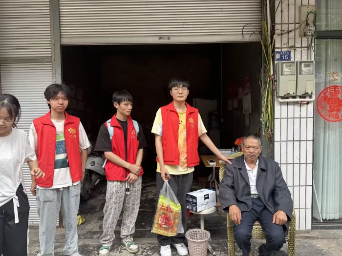 在村支書的帶領(lǐng)下,實(shí)踐隊(duì)一一探訪了那些獨(dú)自守家的老人,首先是胡爺爺,在去看望時(shí)他正在理發(fā),正好實(shí)踐隊(duì)中趙若行同學(xué)有一點(diǎn)理發(fā)經(jīng)驗(yàn),幫胡爺爺剃頭,隨后其他成員和爺爺聊天,從對(duì)話中得知,胡爺爺?shù)淖优纪獬龃蚬,一般只在重要的?jié)假日會(huì)回家看望他,其他大部分時(shí)間都獨(dú)自留在家中,生活起居都只靠他一人,從他的話中能明顯感受到他對(duì)子女的想念,實(shí)踐隊(duì)希望爺爺能安度晚年。