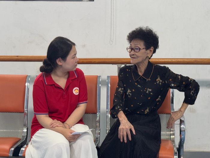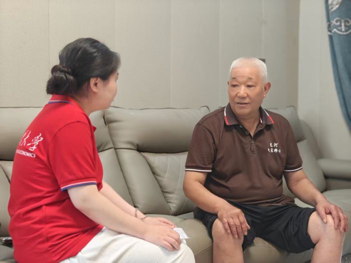 圖為團(tuán)隊(duì)成員采訪乾隆貢酥第九代傳承人葉書(shū)華 紀(jì)汶彤供圖