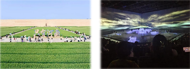 圖 7 隊(duì)員們與佛像合影                                     圖 8 隊(duì)員們在“官渡之戰(zhàn)”場景復(fù)原區(qū)前駐足