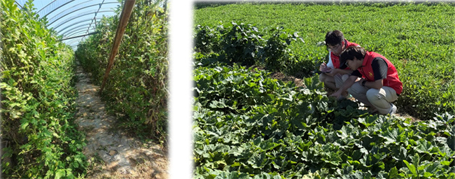 圖 20 隊(duì)員們參觀蔬菜大棚                                                            圖 21 隊(duì)員們下地觀察農(nóng)作物生長情況