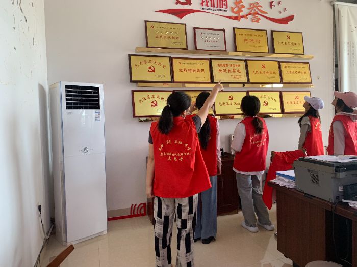 (圖為廣西民族師范學(xué)院云帆實(shí)踐隊(duì)在參觀石路村榮譽(yù),攝影:韋翠毓)