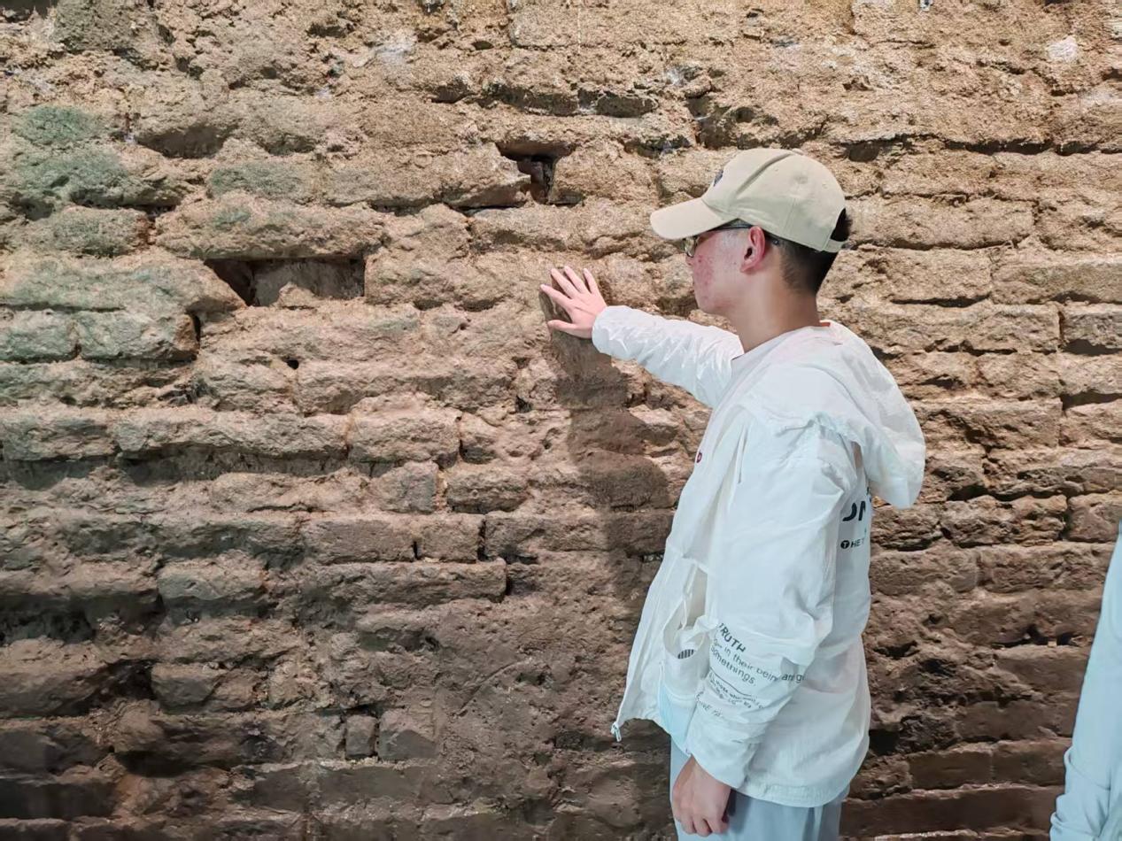 8月17日,實踐團來到回龍窩歷史文化街區(qū),漫步在青石板路上,古色古香的建筑與現(xiàn)代文創(chuàng)店鋪相映成趣。隨后,團隊走進(jìn)城墻博物館,在地下展區(qū)的古城墻遺址前駐足。講解員指著城墻磚石上的刻痕介紹:“這座明代城墻在修建時,回漢工匠共同參與,磚石上的不同標(biāo)記,正是當(dāng)年各民族工匠協(xié)作的證明。歷史上,徐州多次面臨戰(zhàn)亂,回漢百姓也曾一起守護城墻,共同保衛(wèi)家園。”