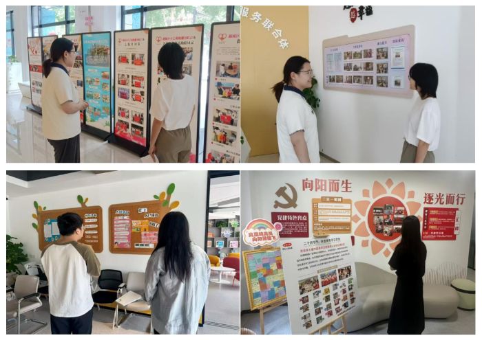 實(shí)踐團(tuán)首先參觀的是越城區(qū)助聯(lián)體的三級服務(wù)網(wǎng)絡(luò)體系。工作人員向我們介紹道,助聯(lián)體以“黨建統(tǒng)領(lǐng)、供需銜接、社會參與”為原則,構(gòu)建了“區(qū)—鎮(zhèn)街—村社”三級服務(wù)網(wǎng)絡(luò),從而實(shí)現(xiàn)了社會救助資源的全域覆蓋與精準(zhǔn)觸達(dá)。這一體系以區(qū)級樞紐平臺為“大腦”,通過數(shù)據(jù)整合與政策調(diào)度,統(tǒng)籌全區(qū)救助資源;鎮(zhèn)街服務(wù)站充當(dāng)“神經(jīng)中樞”,負(fù)責(zé)需求對接與項目協(xié)調(diào);村社服務(wù)點(diǎn)則如同“神經(jīng)末梢”,直接扎根社區(qū),確保幫扶措施落地到戶。