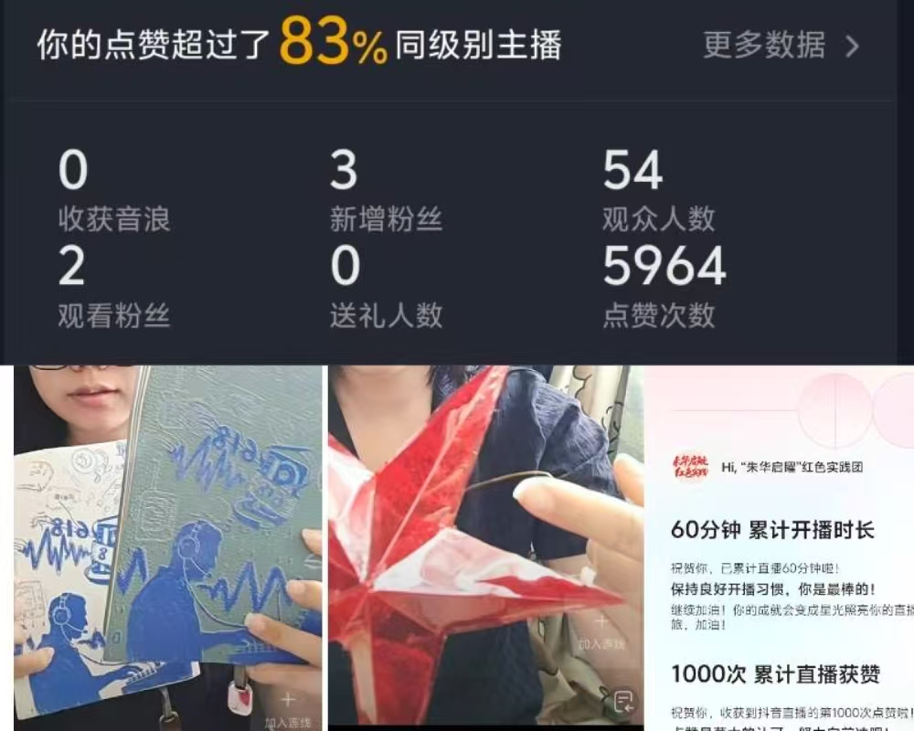 圖為實(shí)踐團(tuán)直播數(shù)據(jù)及截圖。孫佳一 供圖