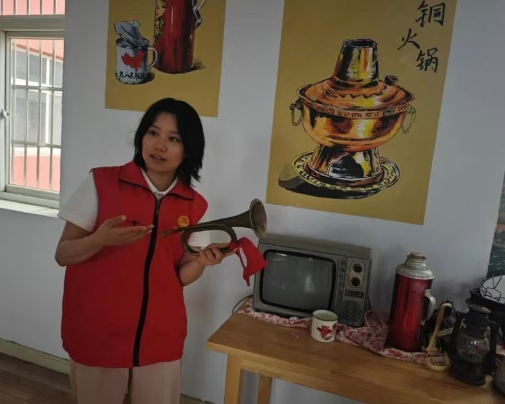 圖為志愿者講解老物件故事及其文化內(nèi)涵。王鑫淼 供圖