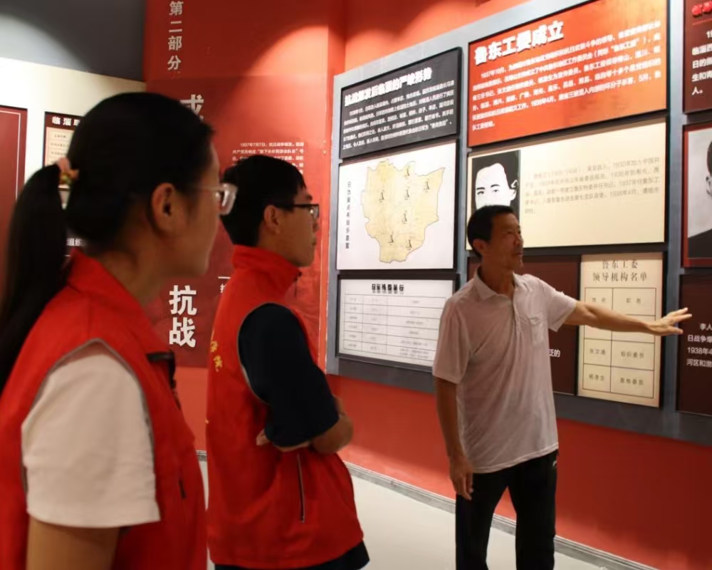 圖為紀(jì)念館負(fù)責(zé)人講述白兔村的紅色歷程。王鑫淼 供圖