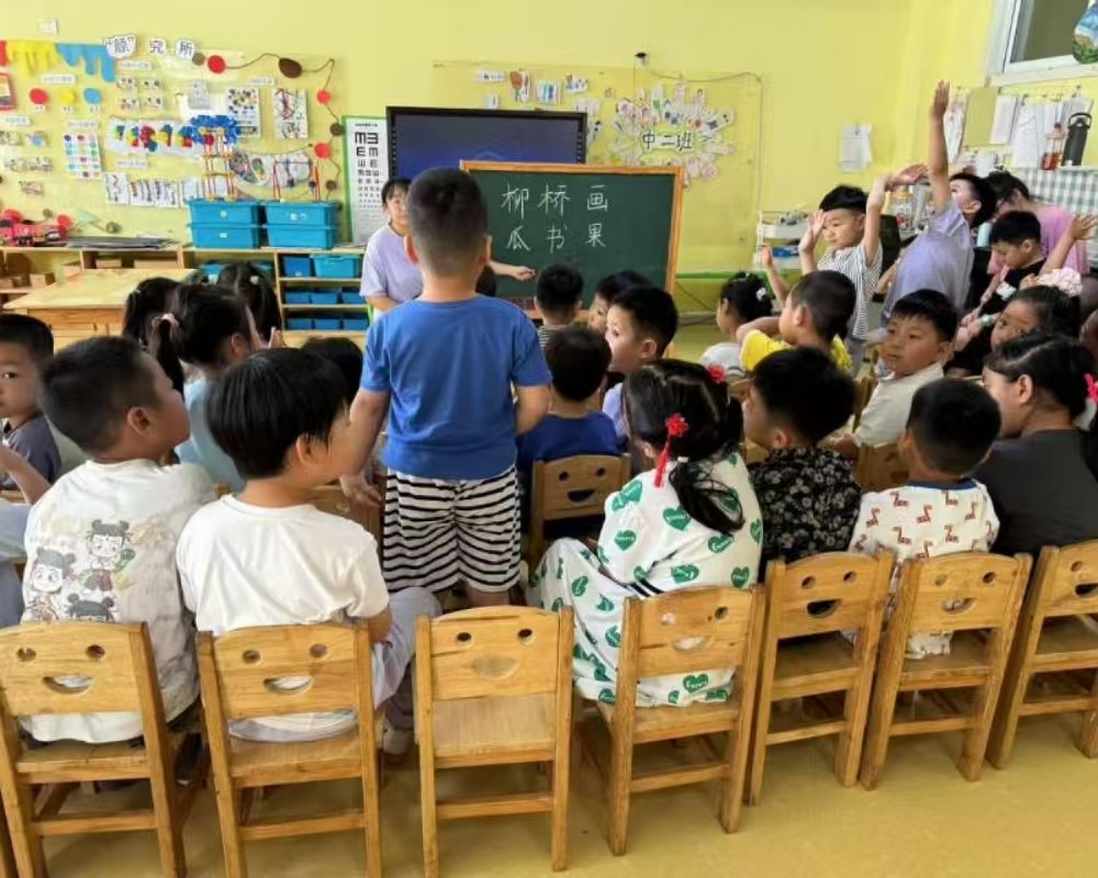 圖為實(shí)踐團(tuán)成員在幼兒園開展紅色精神課堂。孫佳一 供圖