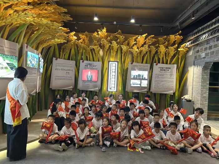 活動尾聲,袁隆平工作室一樓展館內(nèi),“榮藥”實踐隊師生與小朋友齊聚。看著袁院士 “禾下乘涼夢” 的科研故事展示,聽著 “一生逐稻” 的奉獻歷程,崇敬之情在空間流淌。