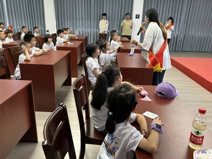 圖為“榮藥”實踐隊隊員魏涵韻正在為小朋友開展廉潔、愛國詩詞文化進課堂課程。 周嘉琪供圖