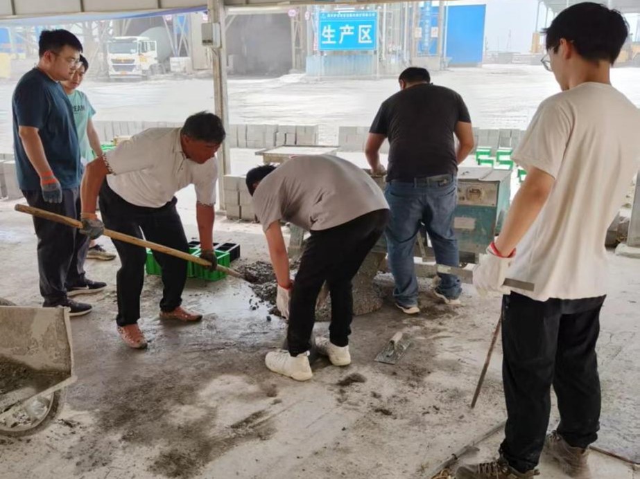 圖為暑期“三下鄉(xiāng)”實(shí)踐團(tuán)隊(duì)成員在商砼站進(jìn)行現(xiàn)場(chǎng)試驗(yàn) 胡前供圖