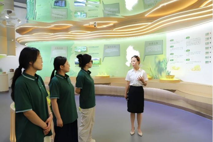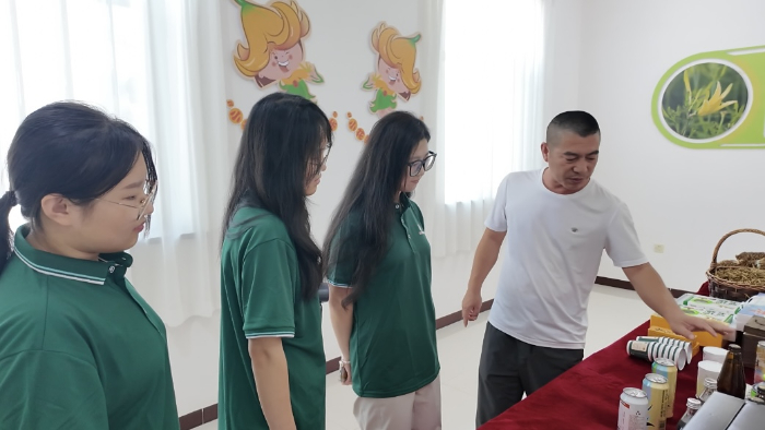 在坊城新村黃花產業(yè)園中,成員們在展廳講解員的專業(yè)帶領下,詳細了解了黃花的生長習性、種植歷史、營養(yǎng)價值以及相關產業(yè)發(fā)展等知識,隨后還參觀了整個黃花流水線加工廠,對黃花產業(yè)的規(guī)模化、標準化生產有了更直觀、全面的認識。同時,隊員們對產業(yè)園工人們的普通話使用情況也進行了細致調研。