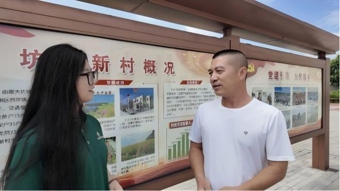 活動首站,服務隊走進坊城新村黨群服務中心。在張書記的帶領下,隊員們參觀了習近平總書記曾到訪的產業(yè)扶貧與就業(yè)扶貧展區(qū),深刻感悟村莊從脫貧到振興的奮斗歷程。參觀結束后,服務隊對張書記進行了深入采訪。