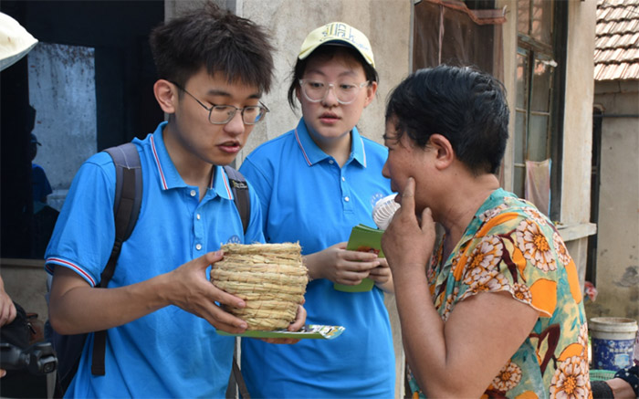 圖為實(shí)踐團(tuán)成員在調(diào)研當(dāng)?shù)夭菥幬幕闆r