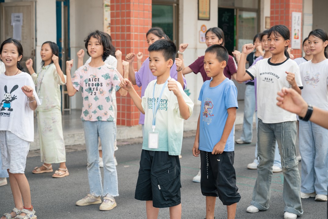 接下來,同學(xué)們開始學(xué)習(xí)營舞。支教老師們耐心地分解每一個動作,一步一步地教給同學(xué)們。同學(xué)們跟著老師的節(jié)奏認(rèn)真學(xué)習(xí),雖然有些動作還不太熟練,但大家都充滿了熱情,反復(fù)練習(xí),整個教室都洋溢著青春的活力。