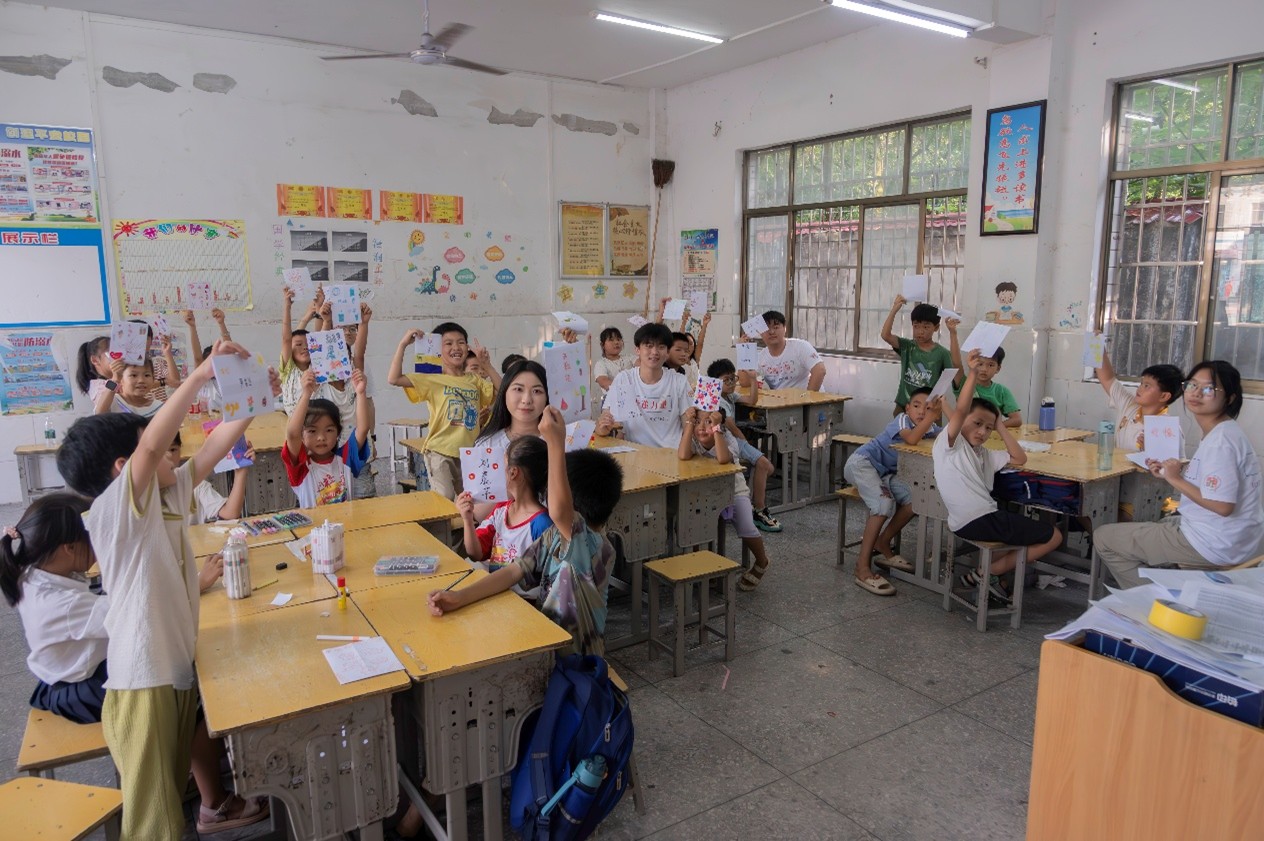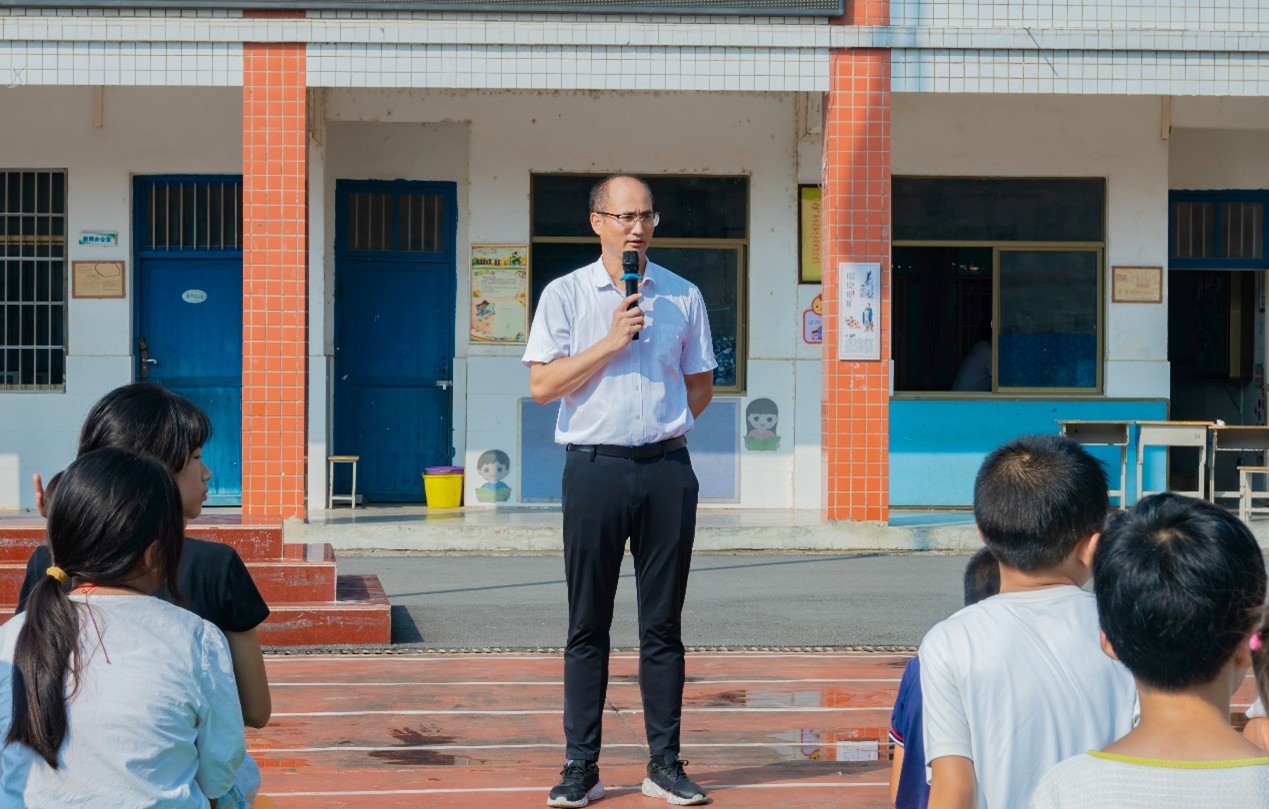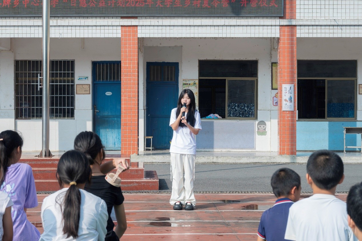 上午時段,開營儀式按流程進行。石珺主持開營儀式,志愿者依次進行自我介紹,展示團隊風(fēng)貌與服務(wù)熱情;校方校長出席并講話,對支教隊表示歡迎,強調(diào)活動對學(xué)生成長的意義,鼓勵師生珍惜互動機會。隨后,為促進學(xué)生快速融入,李秉澤帶領(lǐng)一營學(xué)生開展“大風(fēng)吹”等破冰活動,其余志愿者分組引導(dǎo),有效消除陌生感,營造積極氛圍。