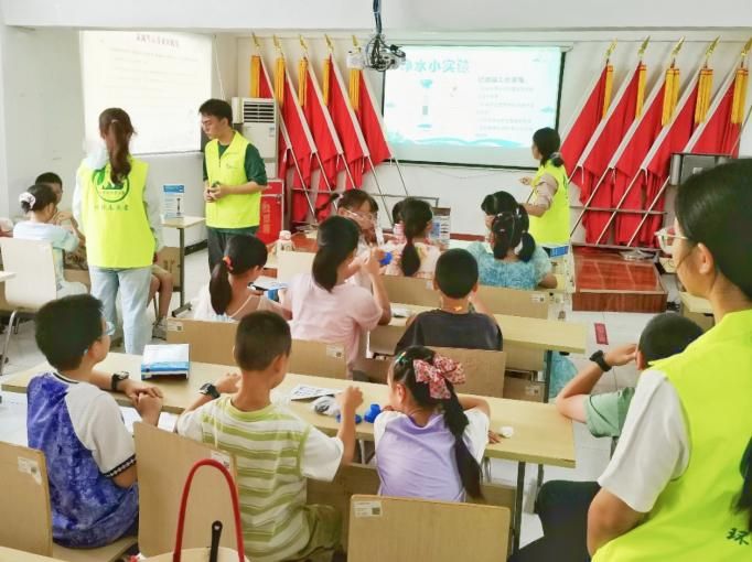 隊(duì)員們通過(guò)多樣化的互動(dòng)形式,引導(dǎo)孩子們親近自然、關(guān)注水資源。在“認(rèn)識(shí)濕地”環(huán)節(jié),隊(duì)員們以實(shí)地收集整理的植物名錄為線索,帶領(lǐng)孩子們走進(jìn)神奇的濕地植物世界,了解濕地的生態(tài)價(jià)值。還讓小朋友們發(fā)揮想象力,用畫筆描繪心中的綠色家園。“節(jié)約用水”主題則注重沉浸式體驗(yàn)。志愿者講述了水循環(huán)的科學(xué)知識(shí),并組織孩子們親手進(jìn)行凈水小實(shí)驗(yàn),親眼見(jiàn)證渾濁的水變得清澈的過(guò)程。大家還利用落葉、瓶蓋等可回收材料共同創(chuàng)作環(huán)保畫作,觀摩水凈化模型的動(dòng)態(tài)演示,深刻感受“人水共生”的真諦。
