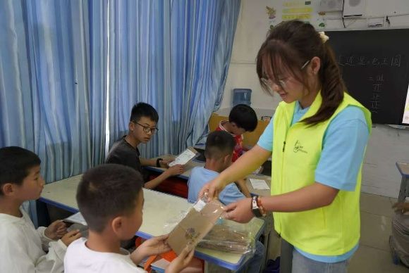 圖 12 小分隊(duì)成員給小朋友分發(fā)獎(jiǎng)品 |