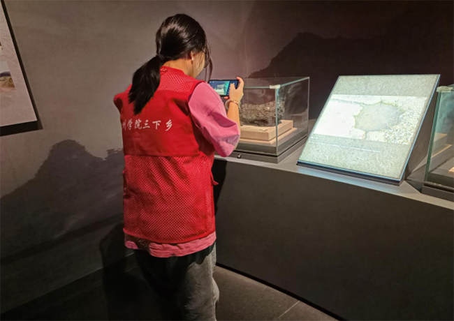 7月2日,在滁州博物館自然風(fēng)物陳列區(qū),實(shí)踐隊成員化身文化傳播使者,開展志愿講解活動。隊員們依托館內(nèi)文物與圖文資料等,向游客生動闡述滁州自然與人文風(fēng)貌在不同歷史時期的發(fā)展變革。通過鮮活的講解,讓游客能夠更直觀地感受滁州的歷史底蘊(yùn)與地域魅力,也使小隊成員在實(shí)踐中深化了對滁州文化的了解,為后續(xù)文化傳播的工作積累了實(shí)踐經(jīng)驗(yàn)。通過實(shí)踐,團(tuán)隊成員們不僅鞏固了專業(yè)知識,更掌握了文化傳播的實(shí)用技巧,為后續(xù)開展社區(qū)文化宣講、制作新媒體科普作品奠定了堅實(shí)基礎(chǔ)。