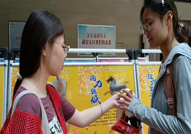 7月3日至4日,團(tuán)隊成員們突破傳統(tǒng)講解模式,在滁州博物館持續(xù)開展互動式文化傳播活動,通過歷史知識問答競賽邀請游客參與,讓靜態(tài)的文物展陳轉(zhuǎn)化為生動的文化體驗(yàn)。