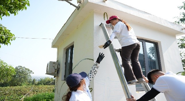 抵達(dá)目的地后,實(shí)踐團(tuán)沒有片刻停歇,立即投入到緊張而有序的工作中。首當(dāng)其沖的任務(wù)是清理墻面,這是繪制美麗圖案的前提。有的墻因?yàn)槟昃檬,布滿了斑駁的痕跡;有的墻則因?yàn)殚L(zhǎng)期暴露在風(fēng)吹雨打中,變得黯淡無光。面對(duì)斑駁的墻面,團(tuán)隊(duì)成員們分工明確,有的手持鏟子鏟除頑固污漬,有的則用砂紙細(xì)心打磨,力求每一寸墻面都能恢復(fù)平整光滑。汗水浸濕了衣背,但大家的臉上卻洋溢著滿足與自豪的笑容。經(jīng)過數(shù)小時(shí)的努力,原本灰暗的墻面煥然一新,為接下來的藝術(shù)創(chuàng)作奠定了堅(jiān)實(shí)的基礎(chǔ)。