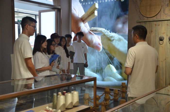 在絲綢公司,同學(xué)們走進(jìn)蠶桑文化館,聆聽絲綢歷史講解,欣賞精美絲綢制品,體驗非遺技藝的傳承與創(chuàng)新。公司還展示了其人才公寓和員工福利,體現(xiàn)出企業(yè)對人才引進(jìn)的重視與投入。