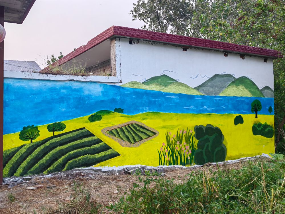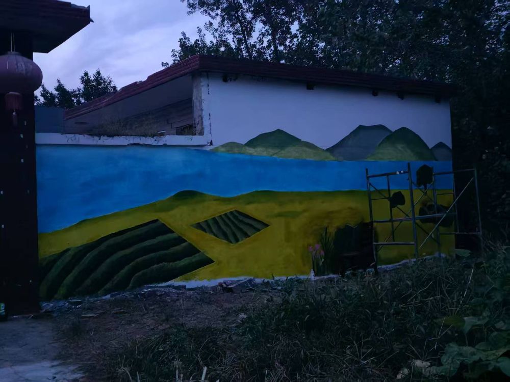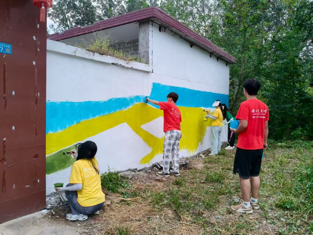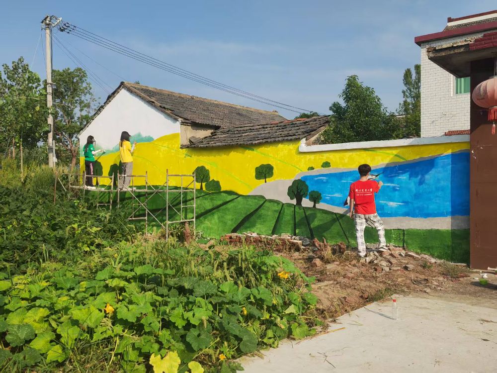 次日一早,實(shí)踐團(tuán)成員早早集合,延續(xù)高效協(xié)作模式,集中精力推進(jìn)整體繪畫。成員們默契配合,精準(zhǔn)把控畫面構(gòu)圖與色彩基調(diào),將生態(tài)元素與鄉(xiāng)村景致的融合度進(jìn)一步提升,快速完成了剩余墻面的整體繪制,為后續(xù)細(xì)節(jié)優(yōu)化打下堅(jiān)實(shí)基礎(chǔ)。