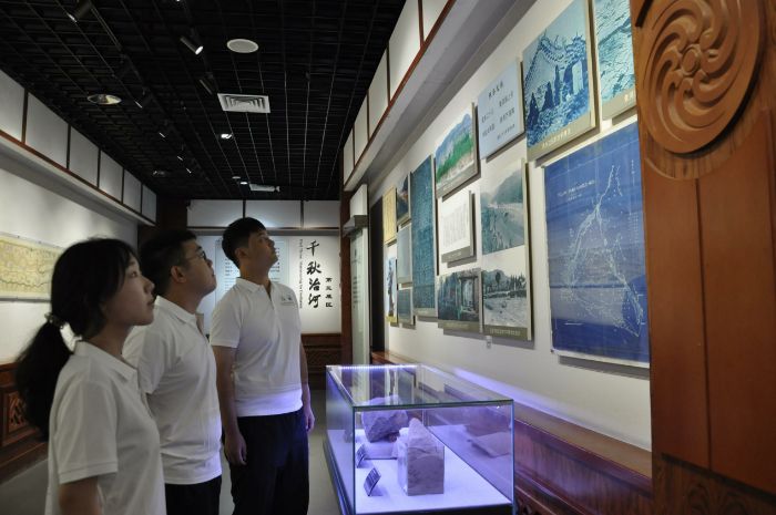 次日,豫水青山調(diào)研小隊走進鄭州黃河博物館,在泛黃的史料與立體展陳中,開啟一場探尋黃河 “前世今生” 的文明溯源之旅。源流展廳內(nèi),巨大的流域沙盤如微縮山河,清晰勾勒出黃河從青藏高原巴顏喀拉山北麓到山東墾利入?诘娜f里征程,玻璃展柜里不同河段的泥沙樣本靜靜陳列,細膩的粉沙與粗礪的卵石形成鮮明對比,直觀揭示了 “地上懸河” 因泥沙淤積逐年抬升的自然邏輯。防洪堤岸的加固技術(shù)、調(diào)水調(diào)沙的動態(tài)演示屏,生動展現(xiàn)當(dāng)代人 “以水控沙、以沙治水” 的治河智慧,讓隊員們讀懂了 “黃河寧,天下平” 的深層內(nèi)涵。