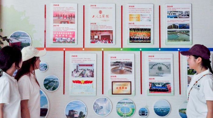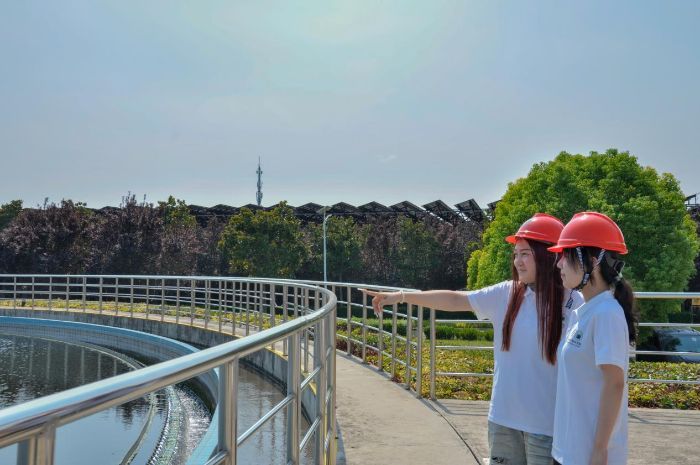 豫水青山調(diào)研小隊首站探訪鄭州市馬頭崗水務(wù)分公司污水處理廠,在工作人員引領(lǐng)下,全程見證污水蛻變?yōu)榍辶鞯纳衿鏆v程。預(yù)處理區(qū),粗格柵如忠誠衛(wèi)士筑起“第一道防線”,精準(zhǔn)攔截塑料袋、樹枝等大塊雜物;升泵房則通過提升水位,為后續(xù)處理輸送動力。核心處理區(qū)的生化池內(nèi),棕褐色混合液不停翻滾,活性污泥中的微生物正高效分解有機物;二沉池里,上層澄清污水與下層沉淀污泥界限分明,完美完成泥水分離。走進水質(zhì)檢測實驗室中,COD、氨氮等指標(biāo)的檢測流程直觀展示了這些數(shù)據(jù)作為水質(zhì)安全“守護者”的關(guān)鍵作用,讓隊員們深切體會到污水處理工程的系統(tǒng)性與嚴(yán)謹(jǐn)性。