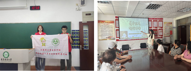 為積極響應(yīng)中國(guó)環(huán)境科學(xué)學(xué)會(huì)與江蘇省環(huán)境科學(xué)學(xué)會(huì)關(guān)于“江蘇省大學(xué)生在行動(dòng)”的號(hào)召,傳承環(huán)保實(shí)踐精神,南京林業(yè)大學(xué)生態(tài)與環(huán)境學(xué)院“綠意先鋒小分隊(duì)”于2025年暑期再度啟程,聚焦“雙碳”目標(biāo)、新污染物治理與生物多樣性保護(hù)三大議題,深入社區(qū)及周邊學(xué)校,開(kāi)展了一系列形式多樣、內(nèi)容豐富的科普宣傳與社會(huì)實(shí)踐。