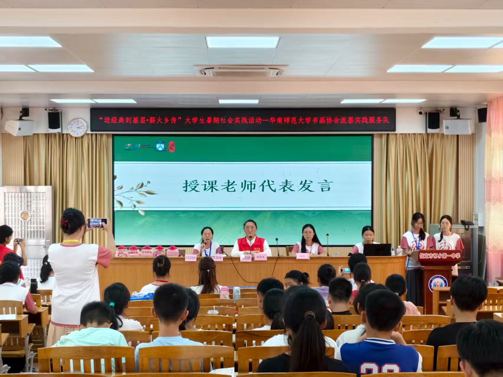 9月2日電(通訊員 羅穎) 2025年7月19日華南師范大學書畫協(xié)會流墨實踐服務隊(后文簡稱流墨隊)暑期實踐活動結營儀式在廣東省信宜市懷鄉(xiāng)第一中學舉行。本次夏令營活動聚焦學生的成長需求,深度融合當?shù)匚幕厣,打造多樣化課程活動,讓學生在理論學習與實踐操作中切身感受傳統(tǒng)文化的深厚底蘊和各學科的獨特魅力,為暑期生活增添色彩。懷鄉(xiāng)鎮(zhèn)團委專職副書記湛朋成、流墨隊全體隊員以及參營學生到場參與結營儀式,共同為暑期夏令營畫上圓滿的句號。