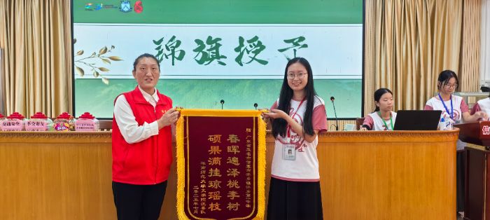 為了感謝懷鄉(xiāng)第一中學對流墨隊本次暑期實踐活動的大力支持,隊長孫樂代表流墨隊向懷鄉(xiāng)第一中學贈予錦旗,表達感謝與敬意。